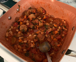 Dinner was The Happy Pear’s sausage and white bean stew. I’ve made it lots of times. Henri was a good boy and had about six bites. Victory for mama!
