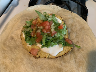 Homemade vegan Crunchwrap! Delicious! Layered with @beyondmeat seasoned with taco seasoning, @hotforfood vegan nacho cheez, tostada, vegan crema, lettuce and tomato.